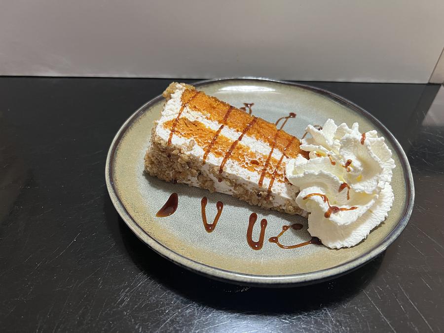 Dulce e húmida tarta de cenoura, cun toque de canela e noz moscada, cuberta con cremoso glaseado de queixo. Un clásico reposteiro que combina tradición e sabor caseiro.