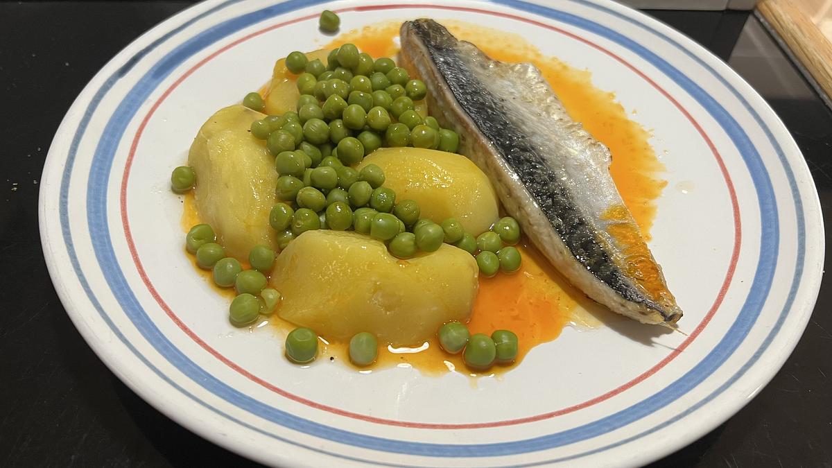 Xarda asada ao forno para resaltar o seu sabor natural, acompañada de patacas fondas e chícharos salteados. Todo adobado con herbas aromáticas que realzan a frescura do prato, creando unha experiencia gastronómica que evoca a tradición e o auténtico sabor da costa galega. ¡Unha delicia!
