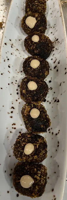 Крокеты с кальмарами из залива с ноткой чернил, с тонкой и хрустящей панировкой, восхитительные. 8 штук