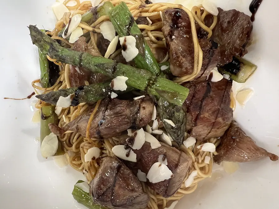 Suculentos mogotes de porco ibérico, cuidadosamente salteados con fideos chineses, verduras frescas e un toque de salsa de soia, que achega un contraste exquisite na boca. Un prato que fusiona tradición e sabores orientais, creando unha experiencia culinaria única que non deixará indiferente.