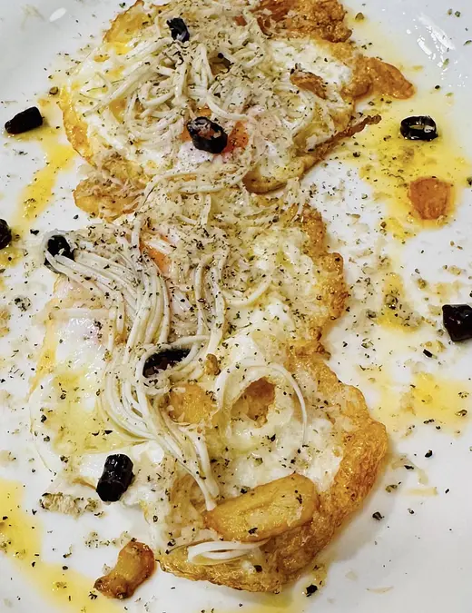 Ovos fritos do “volteiro” con angulas de Madagascar e trufa