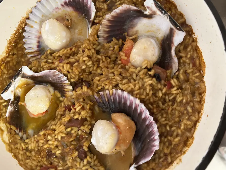 Изысканный рецепт, который сочетает в себе рис короткого зерна, медленно приготовленный в собственном бульоне из каракатицы, с добавлением свежих морепродуктов из залива. С нотами чеснока и легким привкусом перца, каждый кусочек переносит на галисийское побережье. Идеально для совместного употребления и наслаждения богатством нашего моря